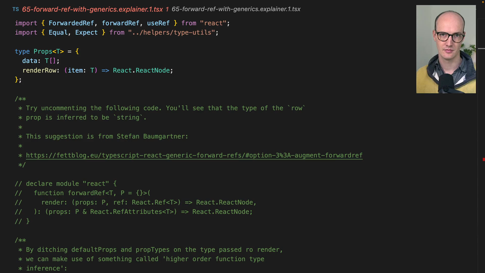 06:16 that mean that TypeScript doesn't infer it too deeply or rather doesn't like apply some higher order function logic to it. So a forward ref implementation is possible. And I actually do recommend that you take this one here and stick it in your projects