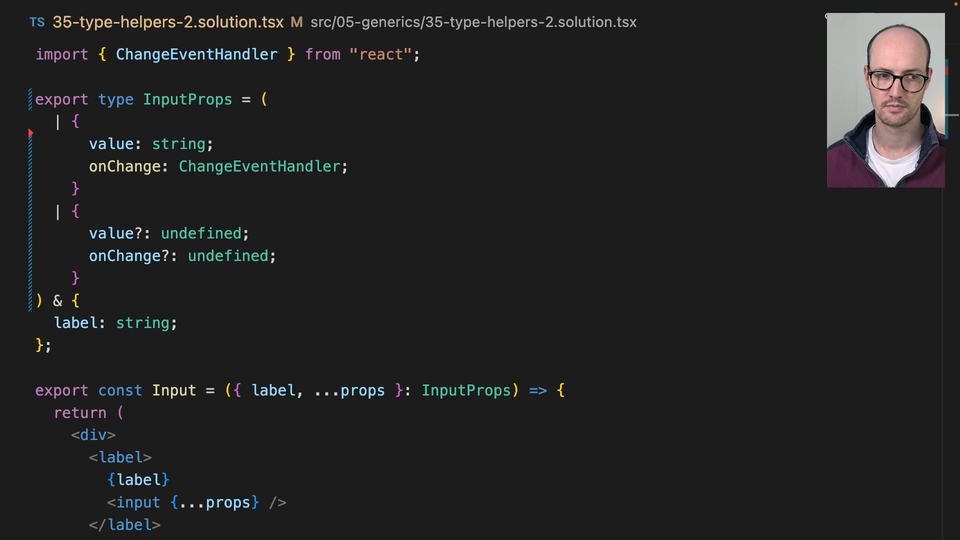 03:21 means now that our all or nothing type helper actually works beautifully because this result is now value string on change change event handler and we've got this partial record value on change undefined. So it sort of slightly mangles this type output here but we know that if you actually