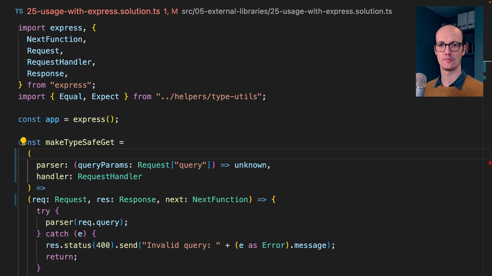 const makeTypeSafeGet = <TQuery>( parser: (queryParams: Request["query"]) => TQuery, handler: RequestHandler ) => (req:
