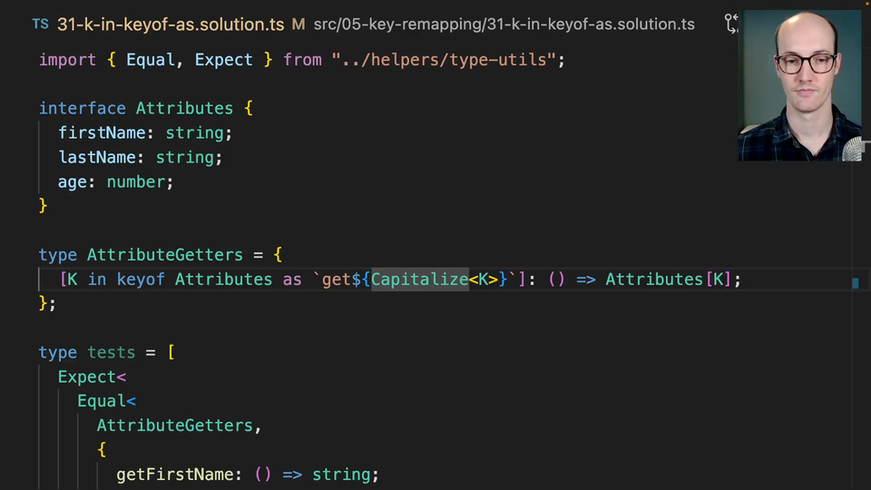 0:00 Let's examine this solution here. The only new thing that we've got is this as here. The as is basically acting like a key remapper. If we remove this, we end up with the type that we are grabbing from here and the solution that we had before.