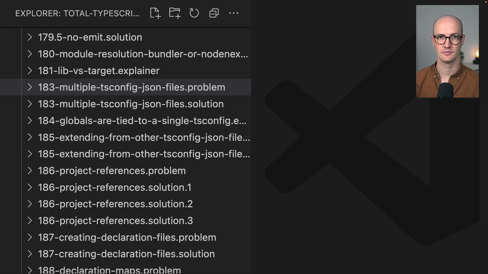 00:18 it will look at the closest tsconfig to it inside this root here. Because you notice, actually, in the entire repo, we actually have a tsconfig right at the root, which, if we don't have any directories in here, that's the tsconfig that's used by default.