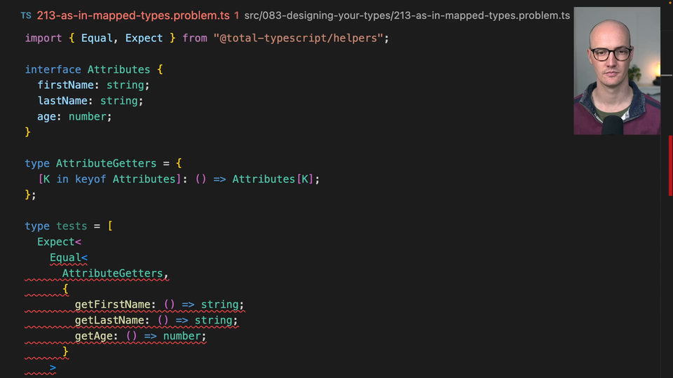 00:26 We want to really signal that these are getters. So your job is to try to work out how inside attribute getters we can remap these keys. And you're going to need, I think, three tools for this. You're going to need to look up key remapping with as inside a map type.