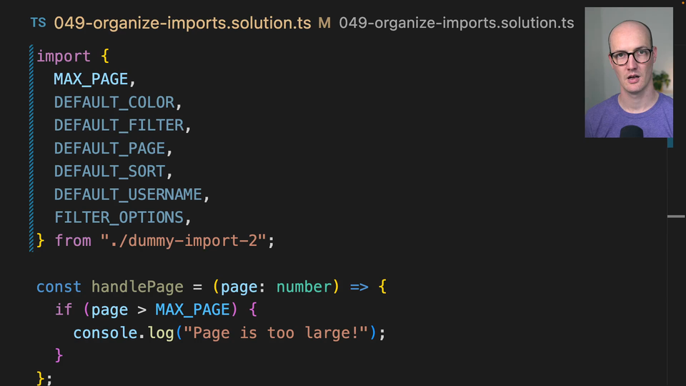 The Organize Imports Hotkey in VS Code