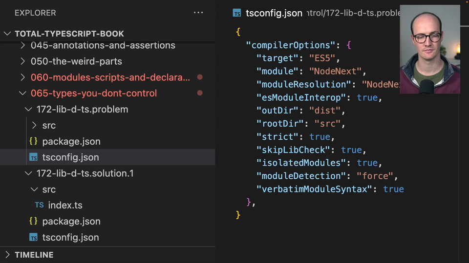 04:40 Usually the bundler itself that you're using will handle this stuff. But using targets and lib Yes, 2022 is pretty safe. And yeah, I think that's everything we need to cover there So just to summarize we have lib.d.ts Which are a bunch of different files which we command click into string here